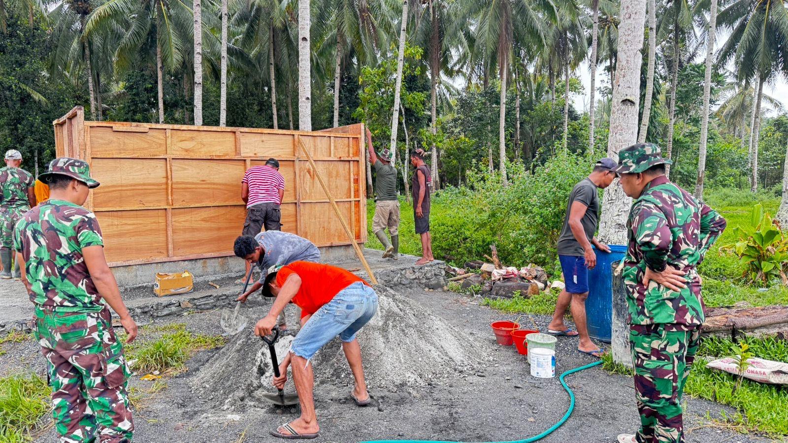 Walaupun terjadi hujan, program TMMD (TNI Manunggal Membangun Desa) tetap berlanjut dan dilaksanakan. Satgas TMMD tetap berupaya untuk menyelesaikan sasaran fisik, seperti pembangunan Jalan Usaha Tani, MCK, Rumah Tidak Layak Huni (RTLH) dan Pembangunan Bak Penampunhan Air Bersih, dengan tetap menjaga semangat dan dedikasi tinggi yang berada di Desa Waraka Kec. Teluk Elpaputih Kab. Maluku Tengah. Sabtu (24/05/2025).