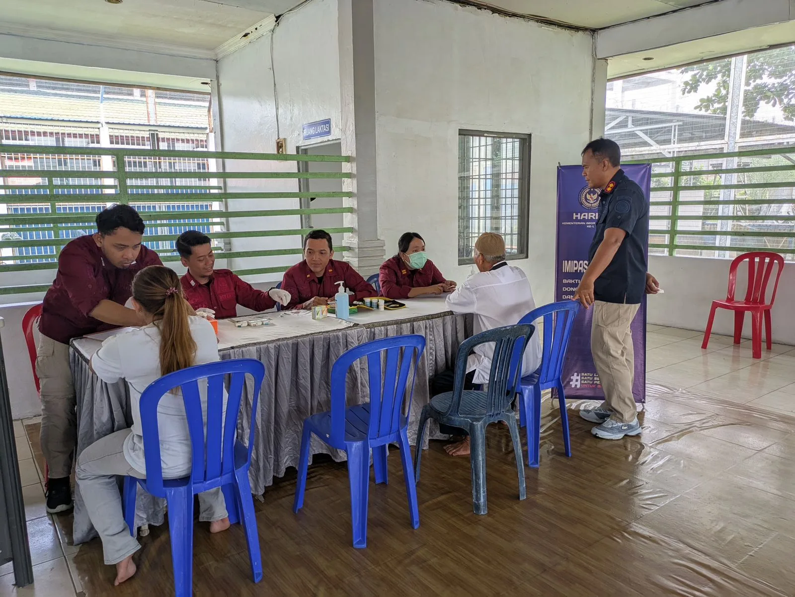 Kegiatan pengobatan gratis ini meliputi berbagai layanan kesehatan seperti pemeriksaan tekanan darah, kadar gula darah, asam urat, kolesterol, serta konsultasi medis dengan dokter. Sebanyak 24 peserta yang terdiri dari petugas dan keluarga Warga Binaan mengikuti pemeriksaan dengan tertib dan antusias. Seluruh kegiatan berlangsung dengan aman, tertib, dan lancar di bawah pengawasan langsung Kalapas Banjarbaru, I Made Supartana.