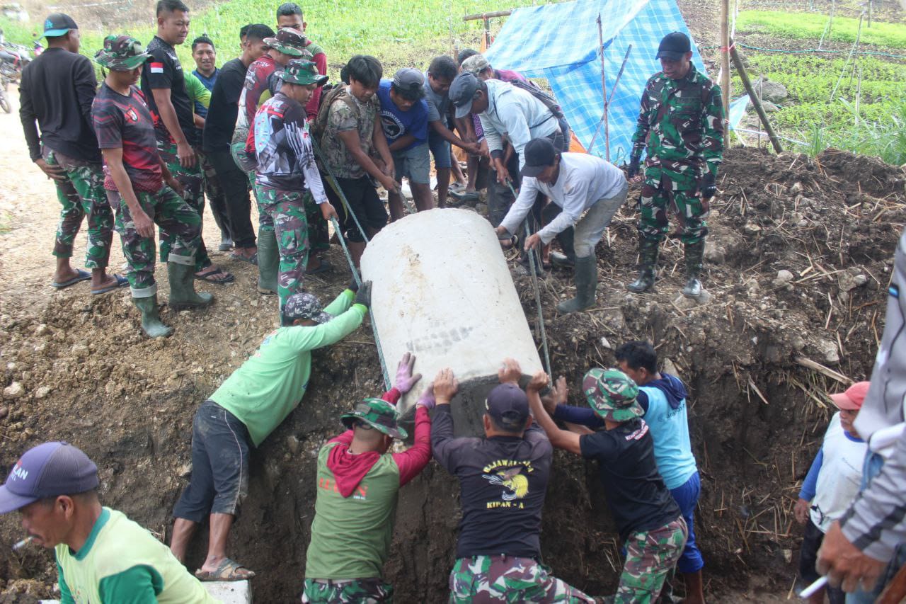 Pemasangan gorong-gorong melibatkan kerja sama erat antara TNI dan masyarakat setempat. Warga ikut membantu mengangkut material dan menata lokasi, sehingga proses pengerjaan bisa lebih cepat.