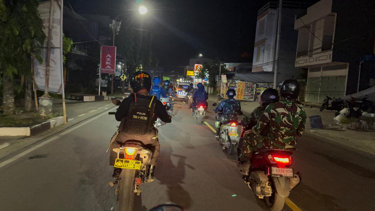 Pinrang_ Untuk memastikan wilayah Kabupaten Pinrang aman dan Kondusif, Personel Kodim 1404/Pinrang bersama Personel Polres Pinrang melaksanakan patroli dimalam hari dengan menyelusuri seputaran perkotaan di Kabupaten Pinrang dengan menggunakan motor Trail, Minggu (14/09/2025).