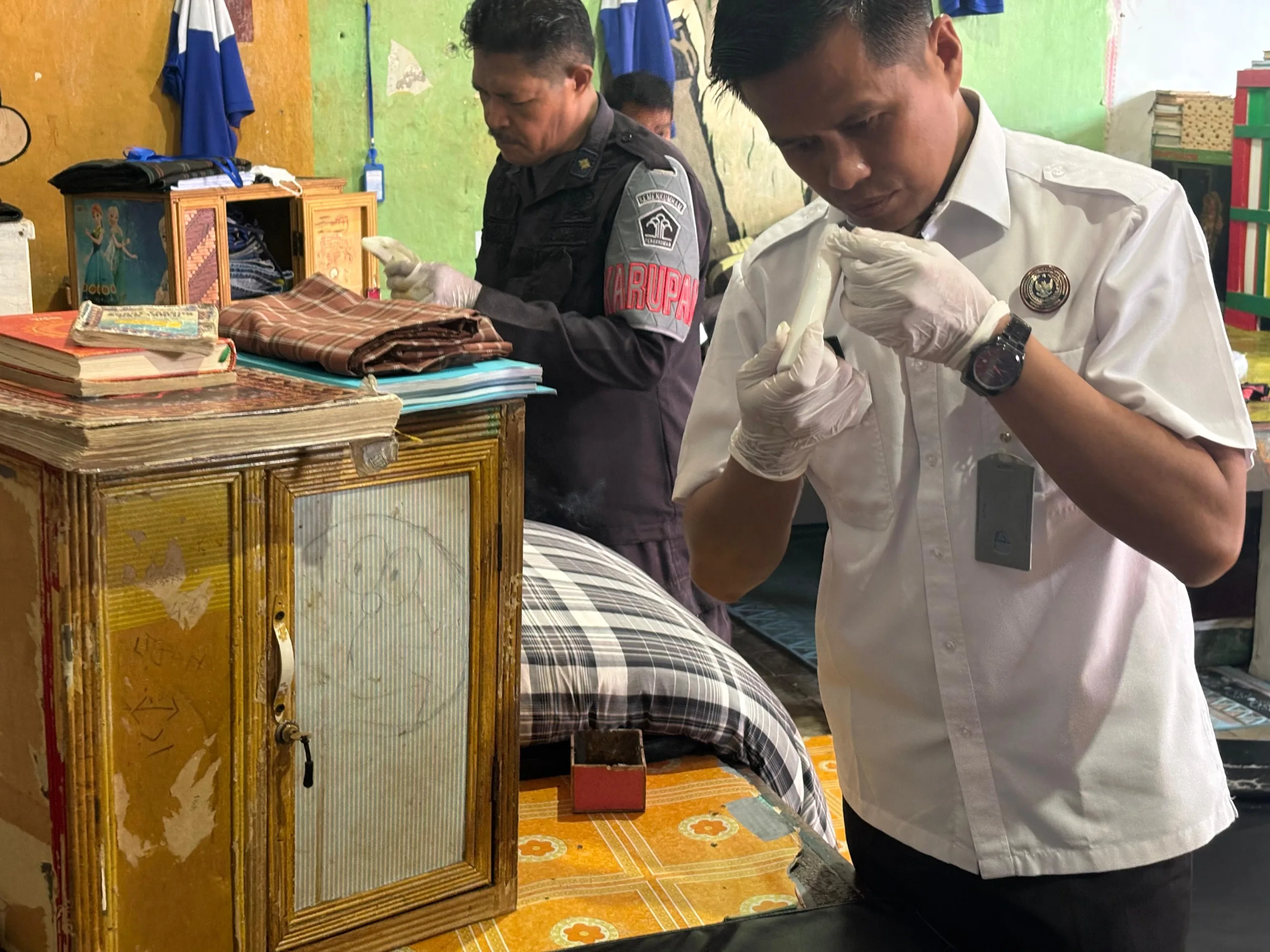Selayar – Kepala Rumah Tahanan Negara (Rutan) Kelas IIB Selayar, Kanwil Ditjen Pas Sulsel, Sofian Hadi Sasmita memimpin langsung sidak / penggeledahan warga binaan dan kamar hunian pada Rabu (22)10).