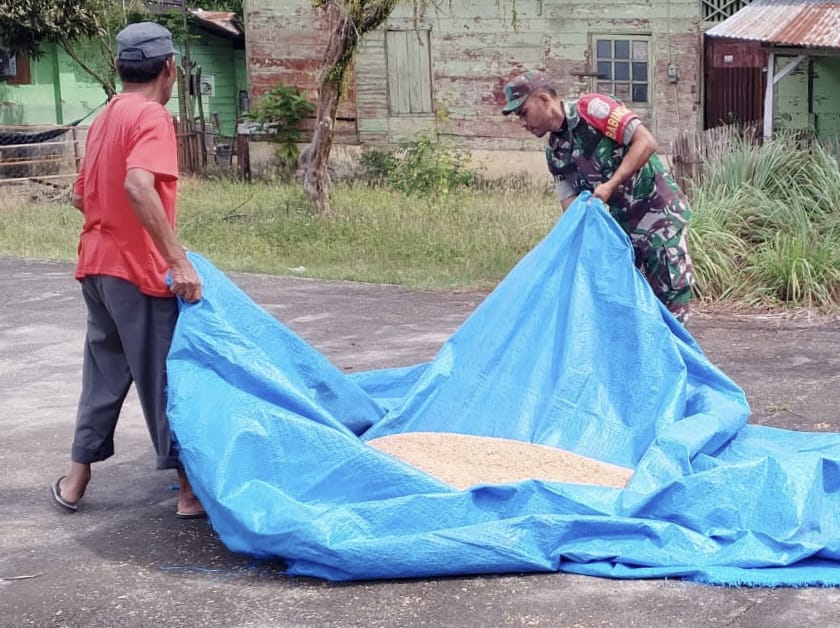 Pendampingan kepada petani tidak hanya sampai selesai di masa panen, tetapi masih terus dilakukan sampai penjemuran padi pun Babinsa juga hadir membantu para petani di desa binaannya.