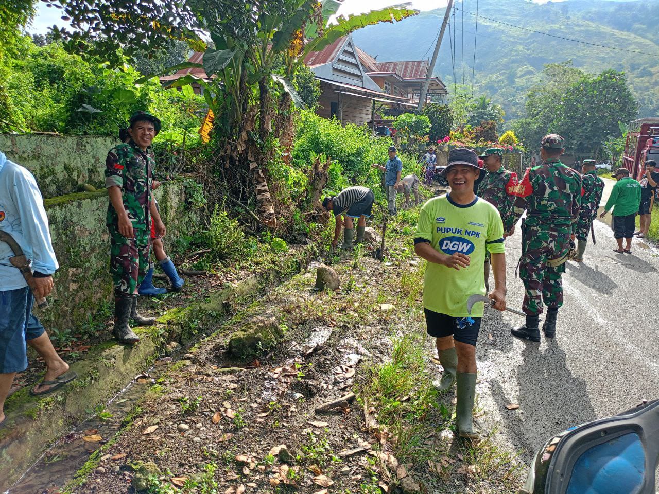 Enrekang, – Menjaga hubungan silaturrahmi dengan warga binaan, Babinsa Koramil 1419-03/Baraka bersama masyarakat bergotong royong Melaksanakan karya bakti pembersihan selokan dari tanah, rumput dan sampah lainnya sepanjang 150 meter di Dusun Madata Desa Lunjen Kec. Buntu Batu Kab. Enrekang. Selasa (01/07/2025).