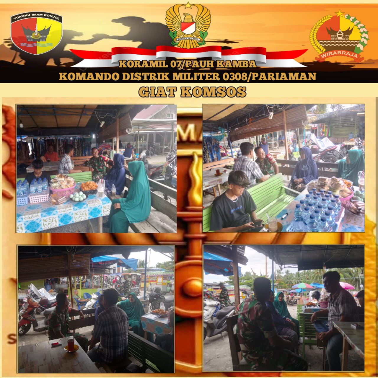 Hal tersebut yang di lakukan oleh Koptu Priyo Santoso Babinsa Koramil 07/Pauh Kamba kodim 0308/Pariman, saat bersosialisasi dengan Rudi hartono salah satu pedagang di pasar yang berada dalam wilayah binaannya di Nagari kampung Galapung Kecamatan Ulakan Tapakis Kabupaten Padang Pariaman. bahwa melalui berkomunikasi sosial yang dibina dengan baik kita bisa mempererat hubungan tali silaturahmi, mendapatkan banyak teman, terlebih dapat berkerja sama dengan warga masyarakat.