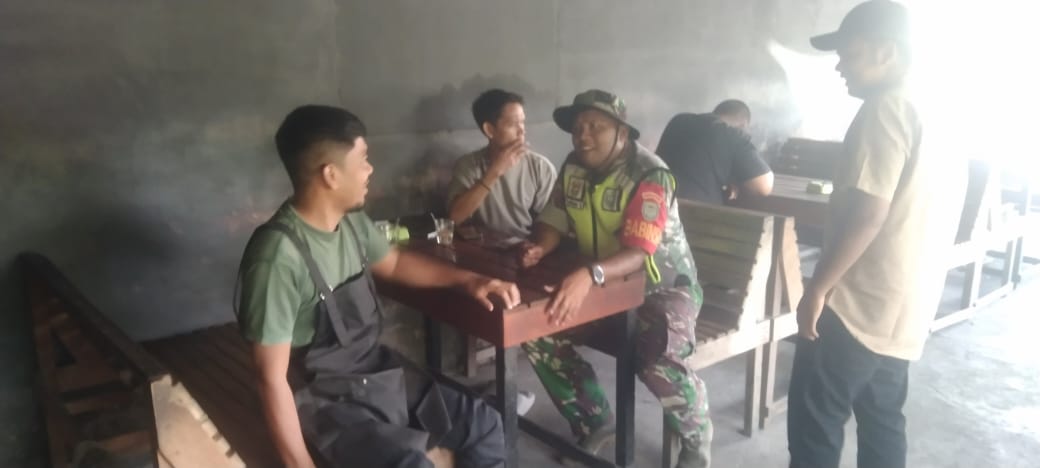 Nagan Raya – Demi mewujudkan wilayah yang aman dan kondusif Babinsa Koramil 02/Seunagan Kodim 0116/Nagan Raya Kopda Dharma Saputra melaksanakan Komsos dengan warga binaan di warung kopi milik warga didesa binaan desa Bantan membahas tentang kebersihan dan keamanan Selasa (29/07/2025).