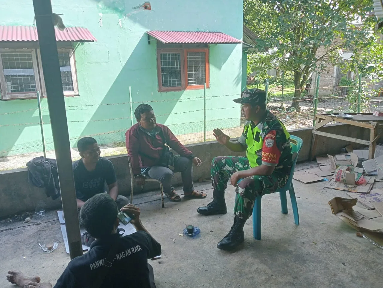 Nagan Raya, Babinsa Koramil 04/Beutong Kodim 0116/Nagan Raya Serda Susanto bersama warga desa binaan berkomunikasi sosial dengan warga desa Blang seumot, kecamatan Beutong Kabupaten Nagan Raya.