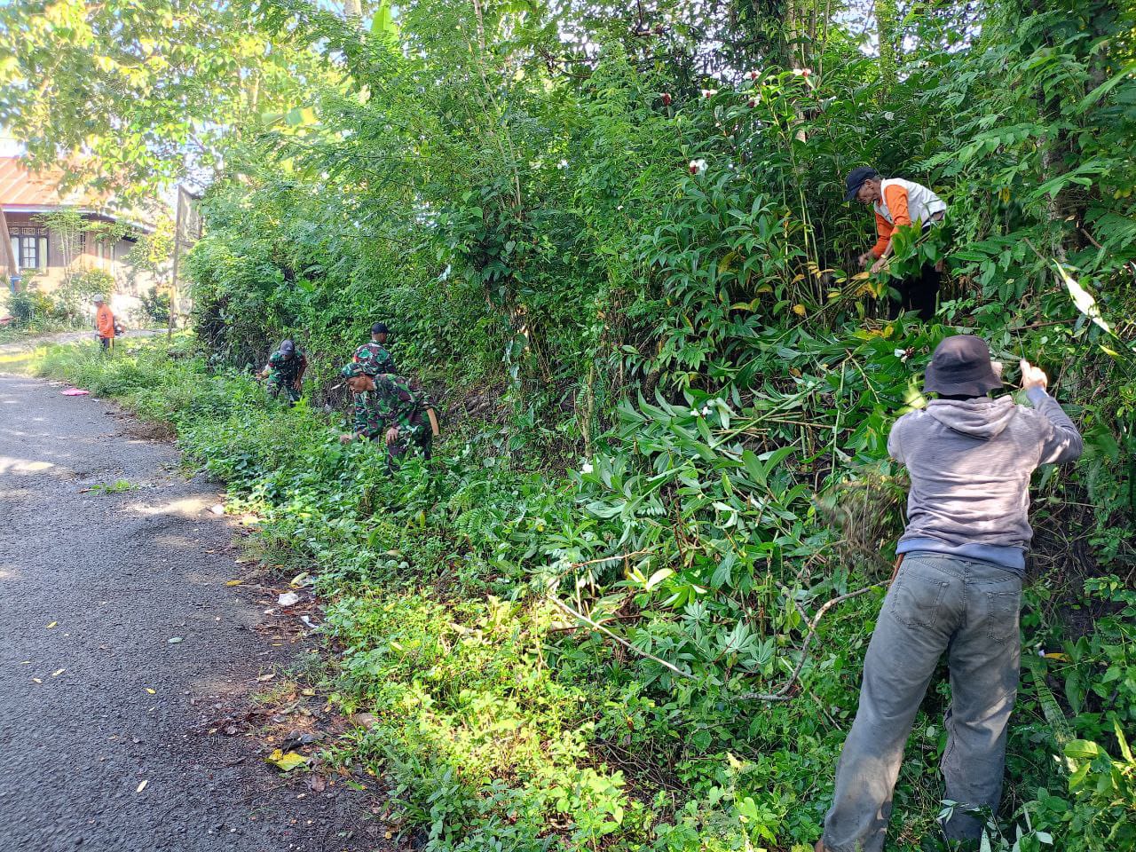 Enrekang — Anggota Koramil 1419-03/Baraka bersama warga setempat Melaksanakan karya bakti pembersihan Selokan dari tanah, rumput dan sampah lainnya sepanjang 150 meter di Dusun Buntu Riru Desa Buntu Mandong Kab. Enrekang, Jumat 30/05/2025
