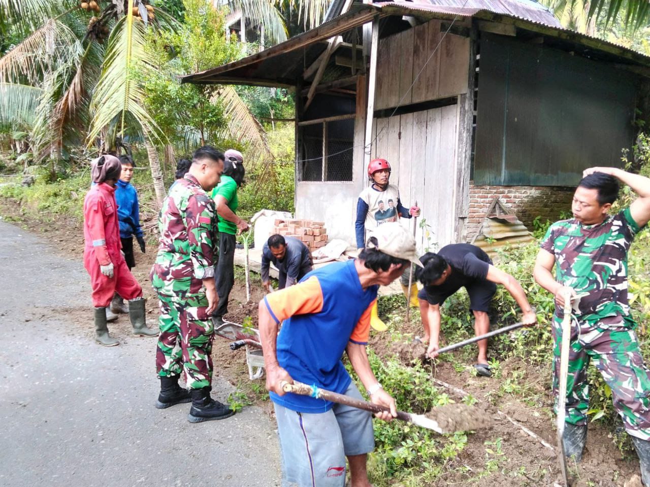 Enrekang — Anggota Koramil 1419-02/Enrekang bersama warga melaksanakan karya bakti pembersihan selokan dari tanah, rumput dan sampah lainnya sepanjang 150 meter di Lingk. Bisang Kel. Lewaja Kec. Enrekang Kab. Enrekang, Jumat 04/07/2025