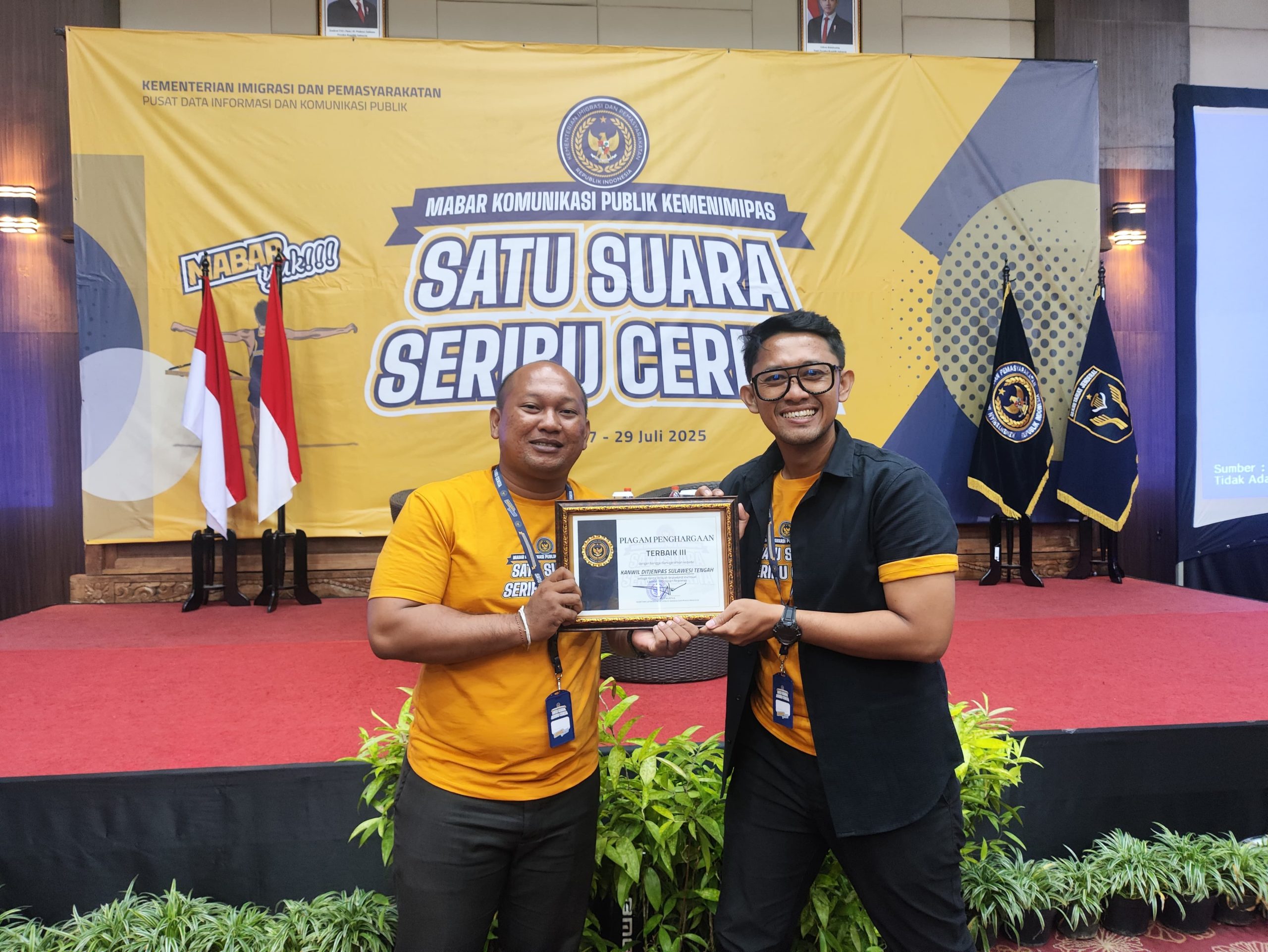 Penghargaan tersebut diserahkan langsung oleh Kepala Pusat Data, Informasi dan Komunikasi Publik Kemenimipas, M. Akbar Prabowo, dalam rangkaian Workshop Komunikasi Publik bertajuk “Satu Suara, Seribu Cerita”, yang berlangsung pada 27–29 Juli 2025 di Merapi Merbabu Hotel, Kota Bekasi, Jawa Barat.