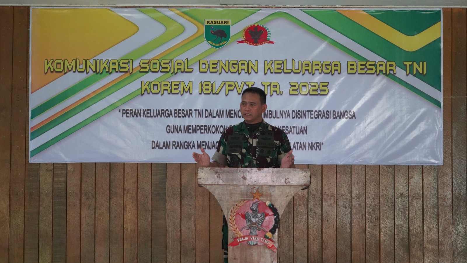 > “Kondisi sosial, ekonomi, dan politik di wilayah Korem 181/PVT relatif stabil dan dinamis. Ini adalah hasil kerja keras seluruh pihak, termasuk kontribusi besar dari Keluarga Besar TNI di wilayah ini,” ujar Danrem dalam sambutan tertulisnya.