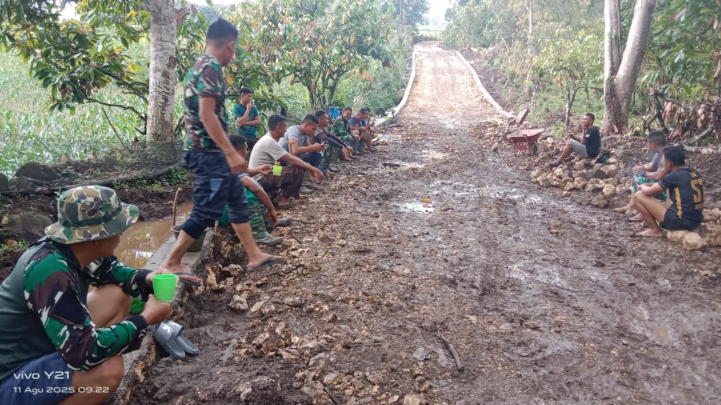 “Kebersamaan seperti inilah yang menjadi kekuatan utama dalam setiap program TMMD. Bukan hanya membangun fisik, tapi juga membangun semangat gotong royong dan persaudaraan,” ujar Serma Munawir salah satu anggota Satgas TMMD.