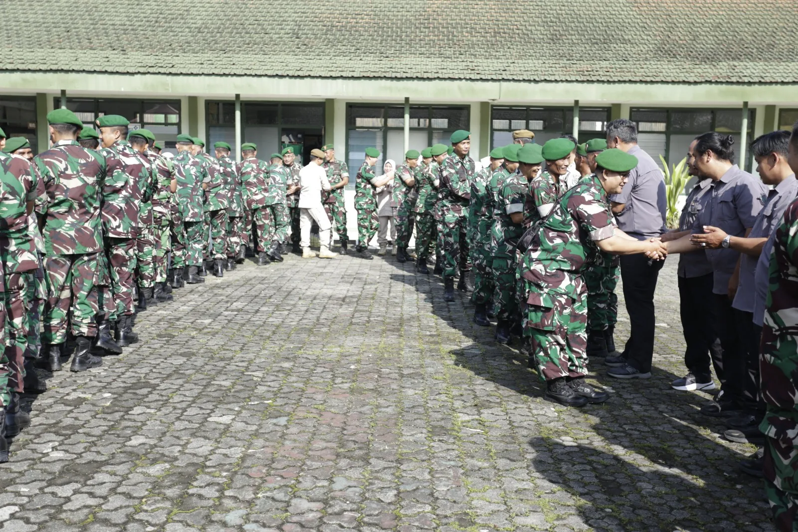 Rangkaian kegiatan dilanjutkan dengan saling berjabat tangan sebagai simbol saling memaafkan, serta ramah tamah yang diisi dengan hidangan dari pelaku UMKM sekitar Makodim. Melalui kegiatan Halal Bihalal ini, diharapkan terjalin hubungan yang harmonis, memperkuat soliditas dan kekompakan, serta menjadi awal yang baik untuk meningkatkan semangat pengabdian, disiplin, dan loyalitas dalam menjalankan tugas ke depan.