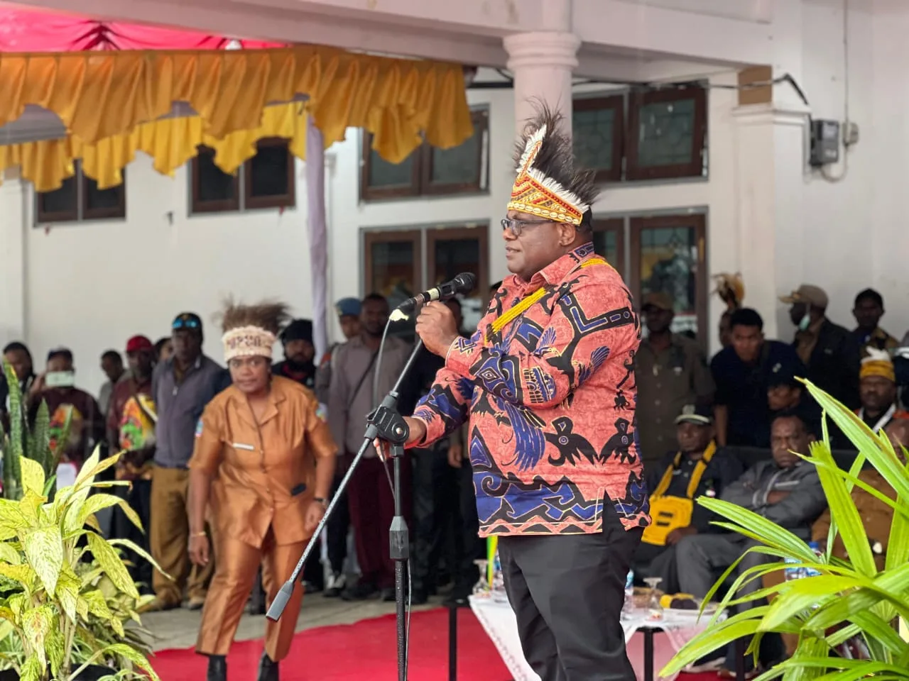 Deiyai – Kedatangan Bpk. Meki Fritz Nawipa, S.H (Gubernur Prov. Papua Tengah) beserta rombongan dalam rangka kunjungan kerja di Wilayah Kab. Deiyai, dengan menggunakan kendaraan dinas (mobil) dari Kab. Paniai di Kantor Bupati Jln. Poros Waghete-Enarotali, Kampung Waghete II, Distrik Tigi, Kab. Deiyai, Provinsi Papua Tengah Jumat, 7 November 2025.