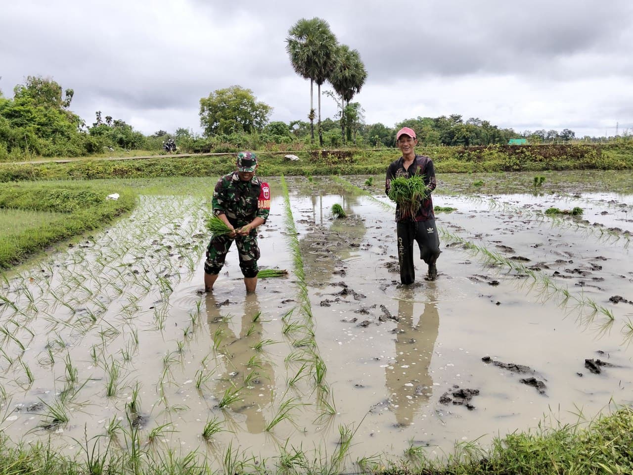 Sementara itu, pemilik lahan persawahan Bapak Rustang yang mendapat pendampingan mengucapkan “Terima kasih kepada pak Babinsa karena telah membantu menanam padi,