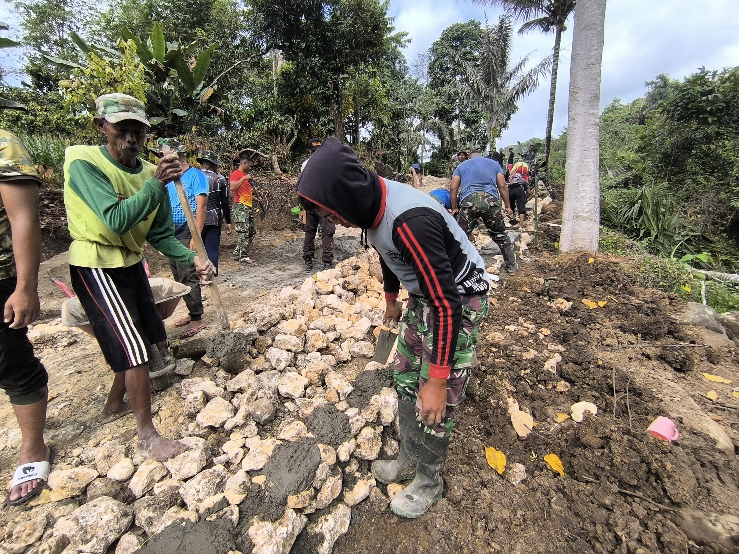 Demi mengejar target hasil persentase yang telah ditentukan, anggota Satgas TMMD bersama masyarakat terus genjod proses pengerjaan pengerasan jalan agar capaian sesuai yang di harapkan.