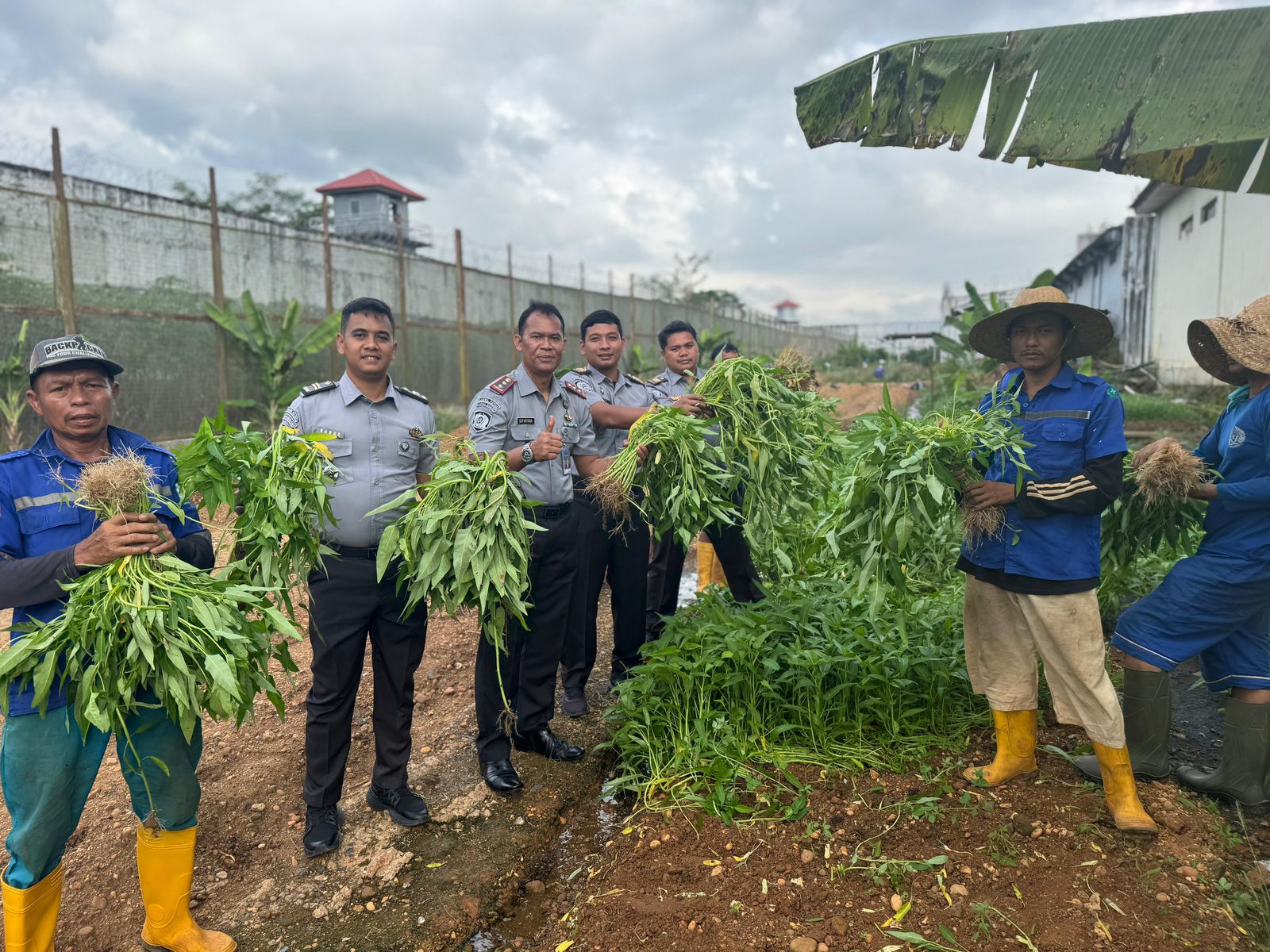 Banjarbaru, INFO_PAS – Kepala Lembaga Pemasyarakatan (Kalapas) Kelas IIB Banjarbaru, I Made Supartana, didampingi para Pejabat Struktural melakukan kegiatan keliling Sarana Asimilasi dan Edukasi (SAE) guna memantau dan memastikan kelancaran program pembinaan kemandirian Warga Binaan, Senin (26/5). Disela kegiatan tersebut, Kalapas bersama jajaran dan Warga Binaan melakukan panen 80 kilogram kangkung dan menanam kelengkeng.