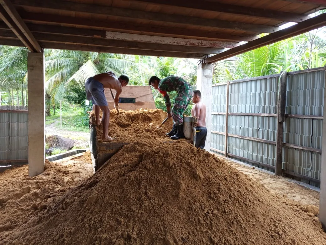 Kemanunggalan TNI-Rakyat, Babinsa Bantu Ayak Pasir untuk Pembangunan Rumah Warga