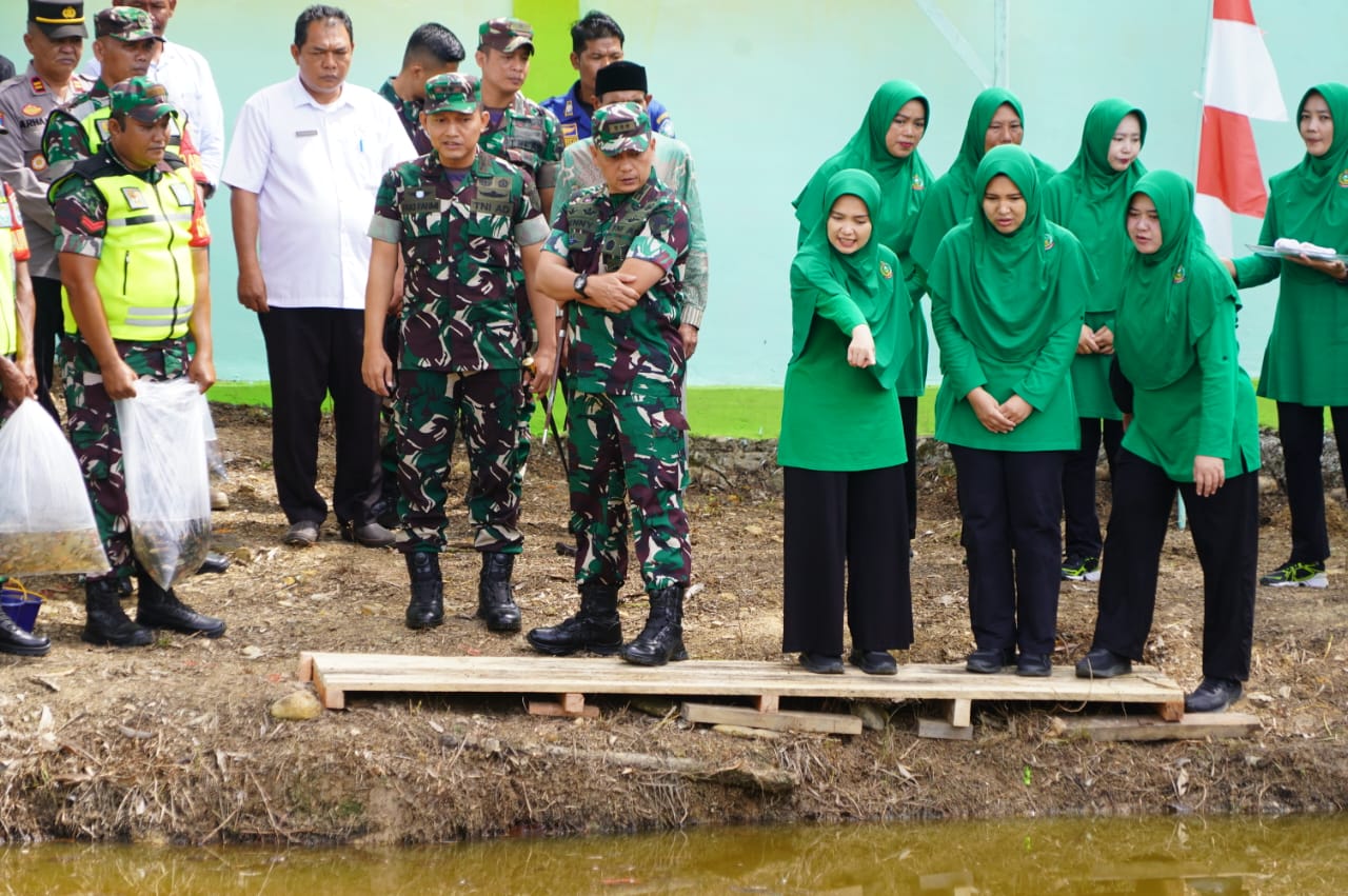 ”Hari ini Danrem langsung menaburkan benih ikan sebagai bentuk dukungan dan motivasi bagi kami dalam mengembangkan potensi lahan satuan,” ujar Dandim.