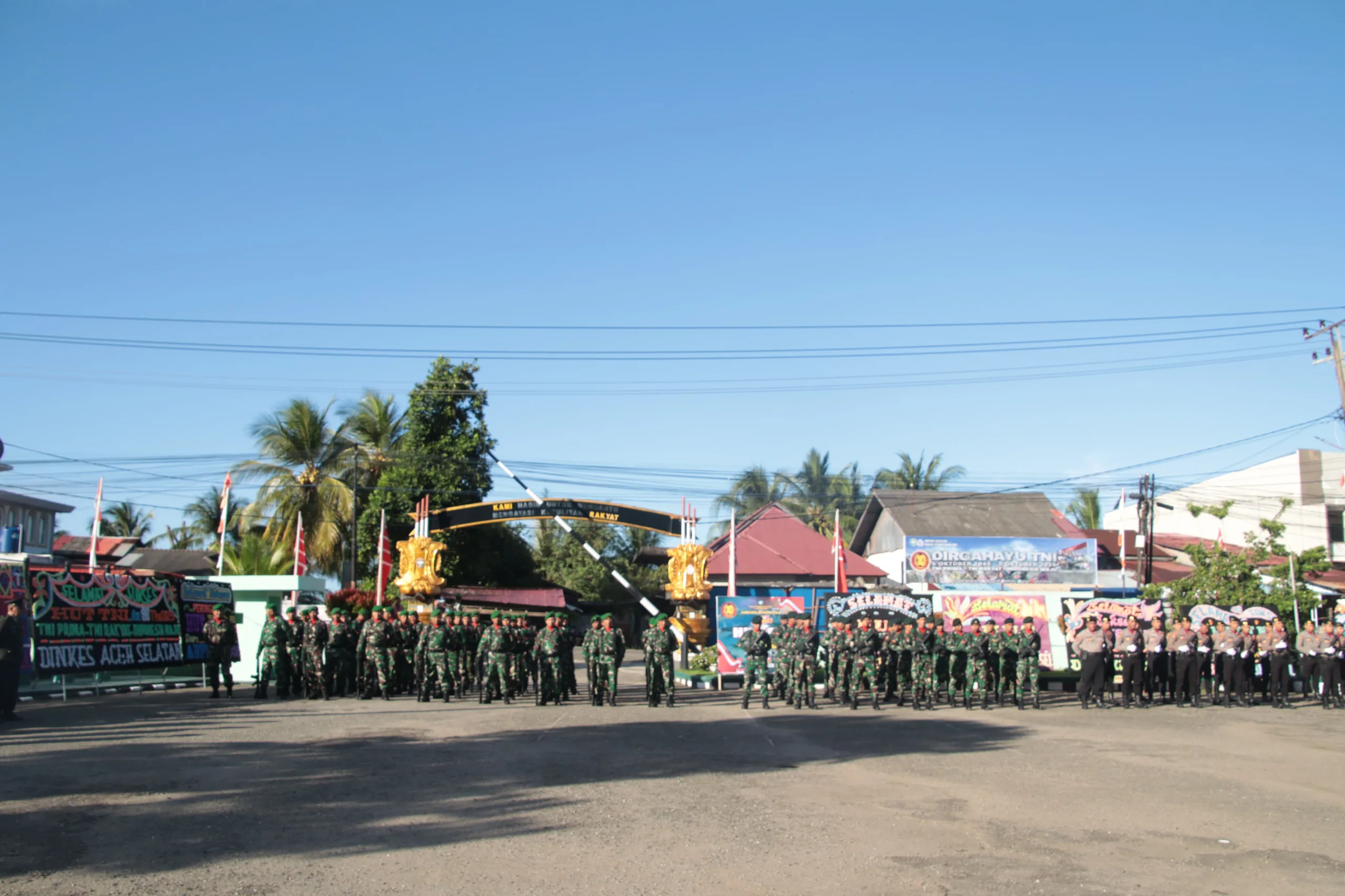 ACEH SELATAN – Kodim 0107/Aceh Selatan menggelar upacara puncak peringatan Hari Ulang Tahun ke-80 Tentara Nasional Indonesia (TNI) di Lapangan Makodim yang bertempat di Desa Lhok Bengkuang Timur Kecamatan Tapaktuan, Minggu (5/10/2025).