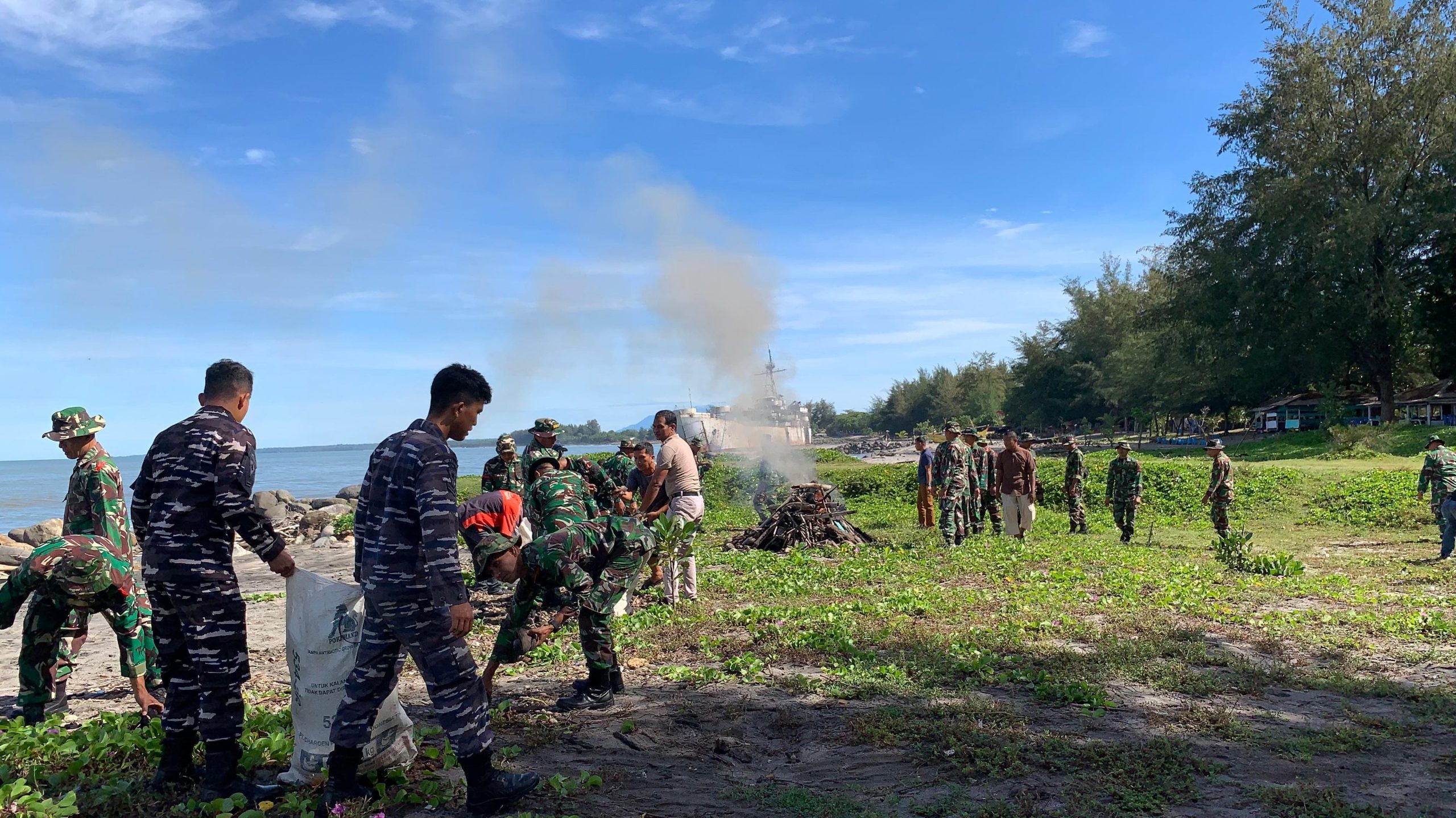 Kegiatan ini melibatkan prajurit TNI Kodim 0308/Pariaman, Prajurit TNI AL, Anggota Polres Kota Pariaman, BPBD Kota Pariaman, Satpol PP Kota Pariaman, masyarakat pesisir pantai. Dengan penuh semangat kebersamaan para peserta bergotong royong membersihkan sampah plastik, kayu dan material lainya yang menumpuk sepanjang garis pantai.