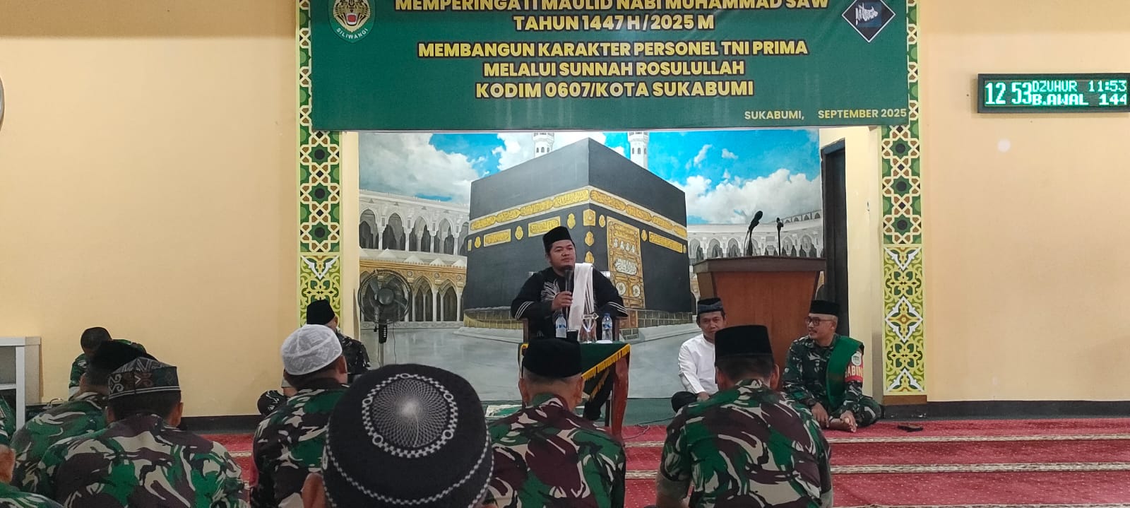 Komandan Kodim 0607/Kota Sukabumi Letkol Czi Indra Gunawan ST.,M.M menyampaikan bahwa peringatan Maulid Nabi ini bukan sekadar seremonial, melainkan momentum untuk memperkokoh keimanan serta menanamkan nilai-nilai keteladanan Rasulullah SAW dalam tugas dan pengabdian kepada bangsa dan negara.