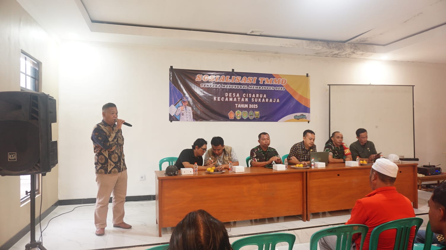 Program Tentara Manunggal Membangun Desa (TMMD) kembali digelar, kali ini menyasar Desa Cisarua, Kecamatan Sukaraja, Kabupaten Sukabumi. Sosialisasi program ini dilaksanakan di Aula Desa Cisarua dan dihadiri oleh sekitar 50 warga serta berbagai unsur TNI, pemerintah daerah, dan tokoh masyarakat.(Jum’at,11/04/2025).