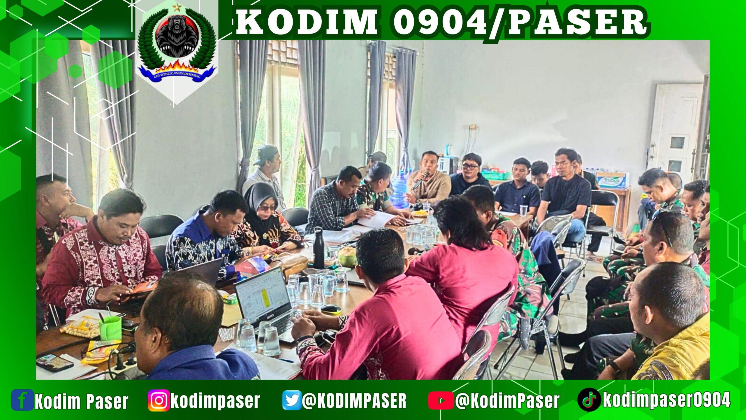 Kodim 0904/Psr, Korem 091/ASN, Kodam VI/Mlw – Pasiter Kodim 0904/Psr, Lettu Inf. Teddy Supriatna dan Danramil 0904-03/Longkali, Lettu Inf. Tabri beserta anggota mengikuti kegiatan Rapat Koordinasi mengenai Rencana Pembangunan Sarana dan Prasarana di masing-masing BP (Brigade Pangan) Se-Kecamatan Longkali bertempat di Aula Balai Penyuluhan Pertanian Kec. Longkali, Kab. Paser, Jumat (23/04/2025).
