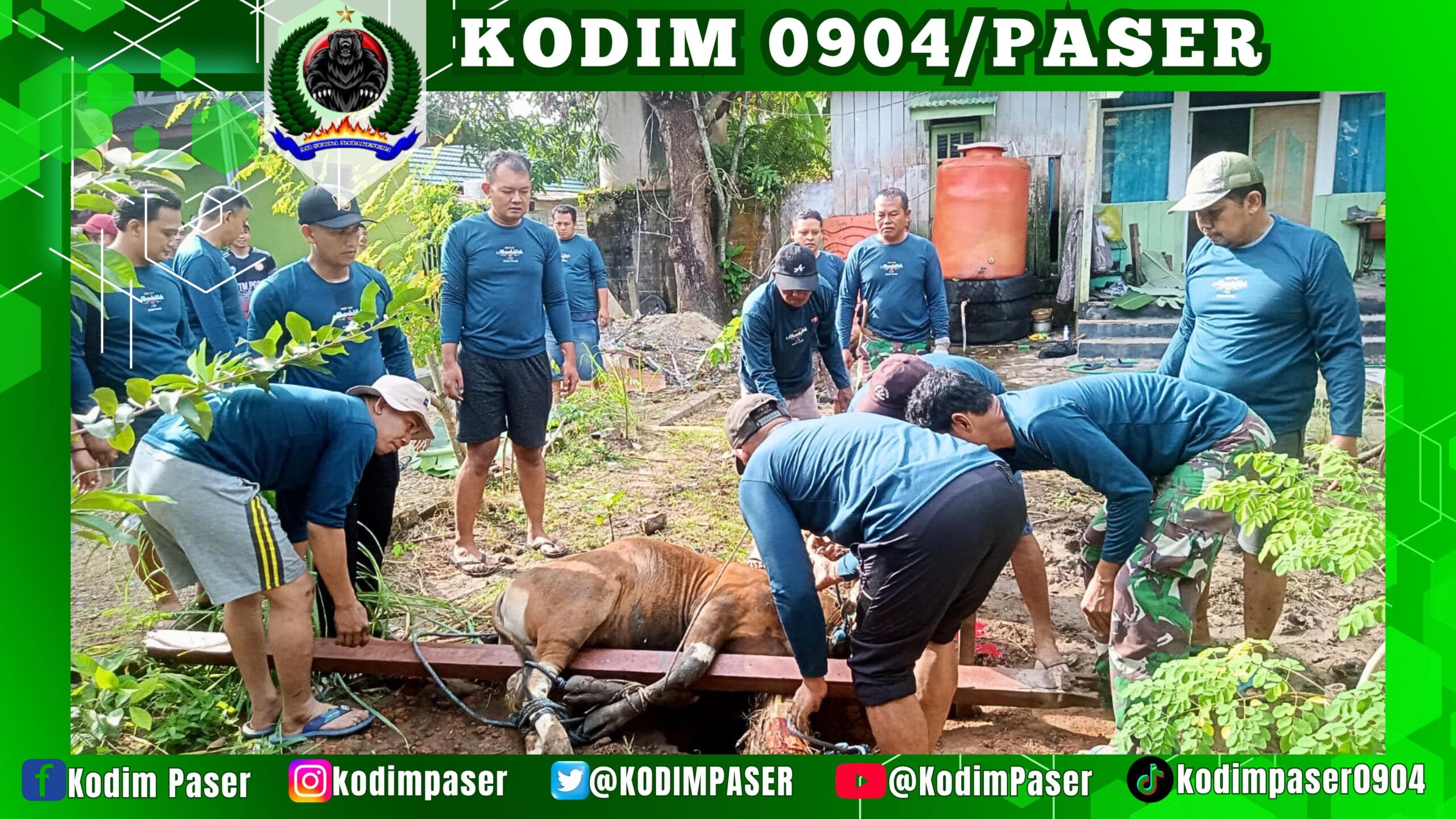 Kodim 0904/Psr, Korem 091/ASN, Kodam VI/Mlw – Dalam rangka merayakan Hari Raya Idul Adha 10 Dzulhijjah 1446 H/2025 M, Komandan Kodim 0904/Psr, Letnan Kolonel Inf. Rommy Aditya Nanda Erlambang Eretan Situlembang Darmawi, S.E., M.I.P.. bersama Prajurit Kodim 0904/Psr melaksanakan kegiatan penyembelihan dan pembagian hewan kurban yang dilaksanakan pada hari Sabtu tanggal 7 Juni 2025 bertempat di Halaman Masjid Al-Muttaqim Kodim 0904/Psr, Jl. Anden Oko, Kec. Tanah Grogot, Kab. Paser. Sabtu (7/6/2025)