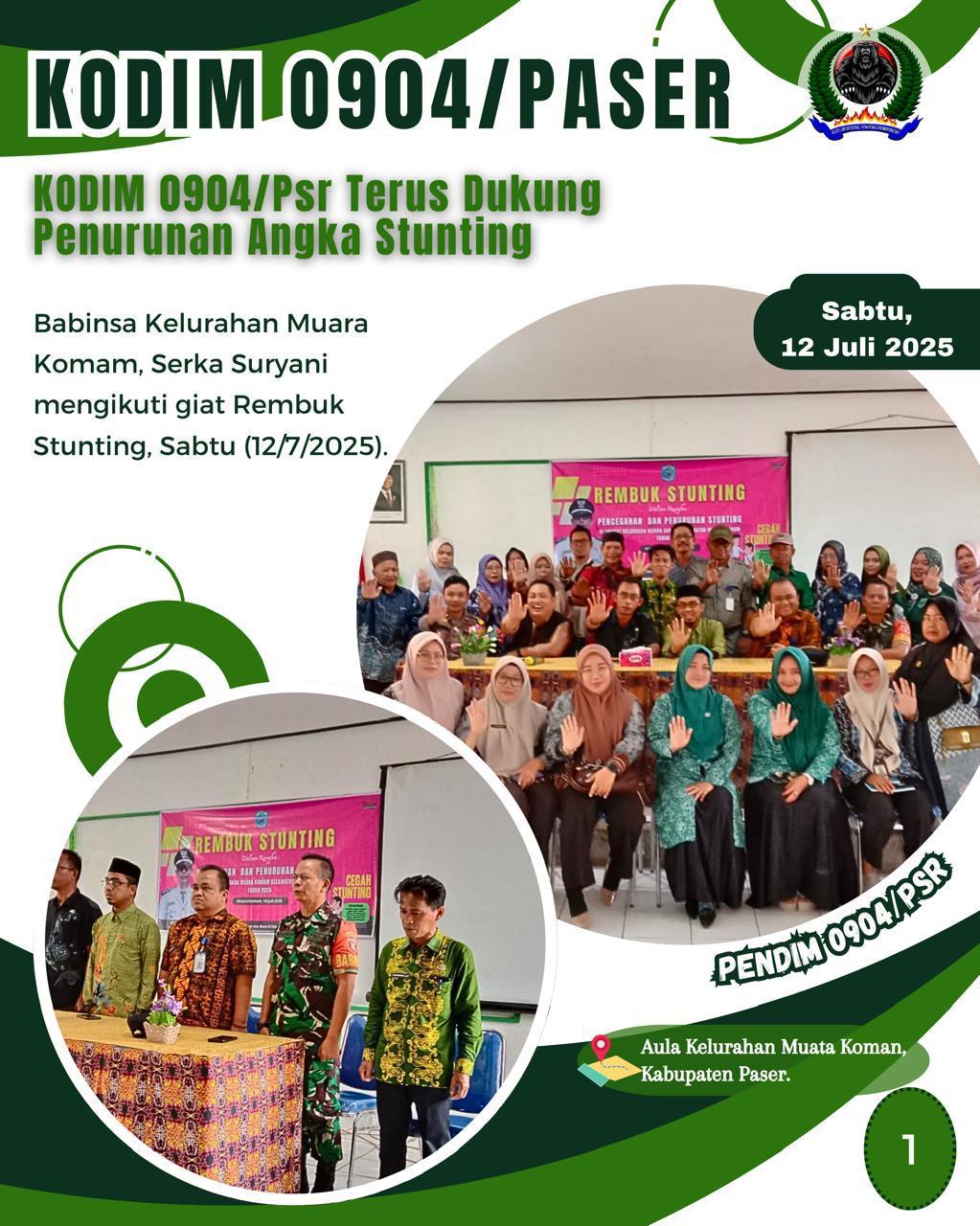 Kodim 0904/Psr, Korem 091/Mrl, Kodam VI/Mlw – Bertempat di Aula Kelurahan Muara Komam, Babinsa Kel. Muara Komam Serka Suriani menghadiri giat Rembuk Stunting, Sabtu (12/7/2025).