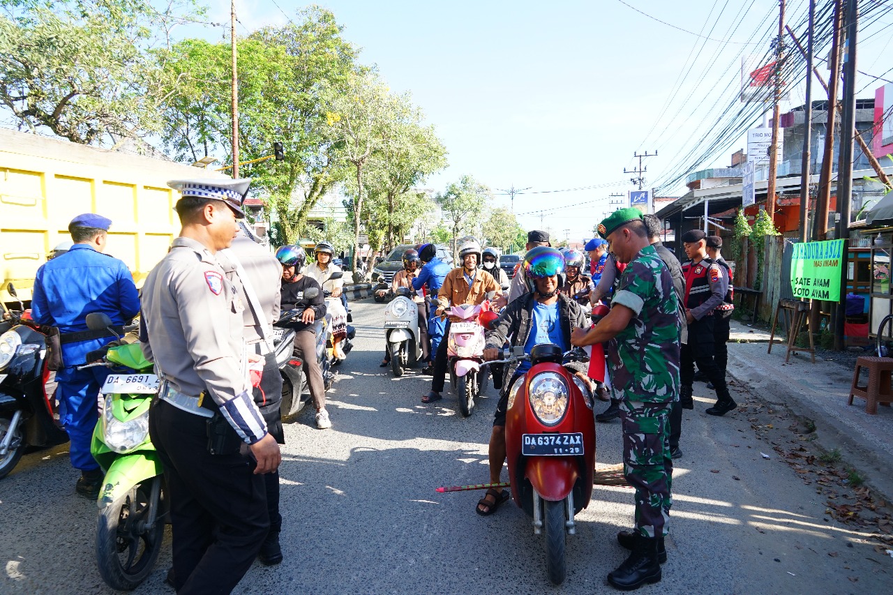 Tanah Bumbu – Dalam rangka menyambut Hari Kemerdekaan Republik Indonesia (RI) ke-80, Personil Kodim 1022/Tanah Bumbu bersinergi dan berkolaborasi dengan Personil Polres Tanah Bumbu melakukan aksi bagi-bagi bendera Merah Putih kecil untuk dipasang di kendaraan roda 4 maupun 2 bagi masyarakat yang sedang melintas di depan taman Education Park Desa Kecamatan Simpang Empat, Kabupaten Tanah Bumbu, Sabtu (09/08/2025)