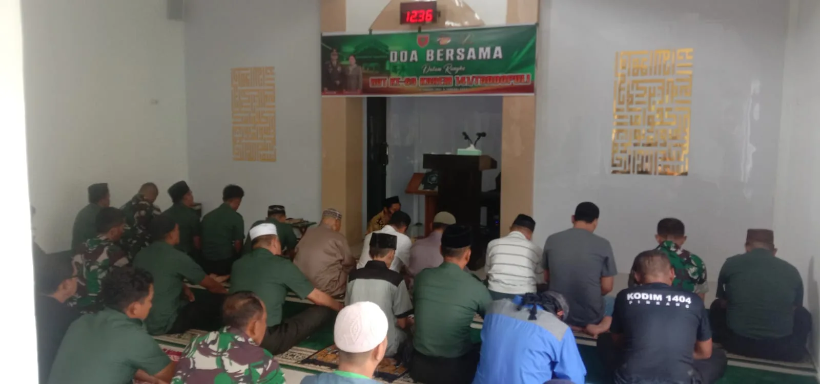 Pinrang_ Dalam rangka memperingati Hari Ulang Tahun (HUT) ke-69 Korem 141/Toddopuli, Kodim 1404/Pinrang melaksanakan kegiatan doa bersama yang bertempat di Masjid Nurul Imam Makodim 1404/Pinrang, Jum’at (08/01/2026).
