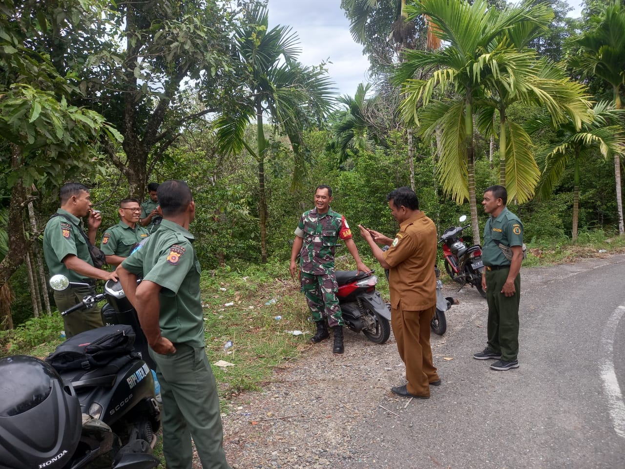 ACEH SELATAN – Dalam upaya memperkuat sinergi antar lembaga dalam menjaga keamanan wilayah dan mencegah kebakaran hutan dan lahan (karhutla), Babinsa Koramil 04/Sawang Kodim 0107/Aceh Selatan Serda Lulut Suseno bersama Petugas Pengamanan Hutan (Pulhut) melakukan komunikasi dan koordinasi langsung di tengah kawasan hutan wilayah binaan yang bertempat di Desa Trieng Meuduro Tunong Kecamatan, Selasa (5/8/2025).