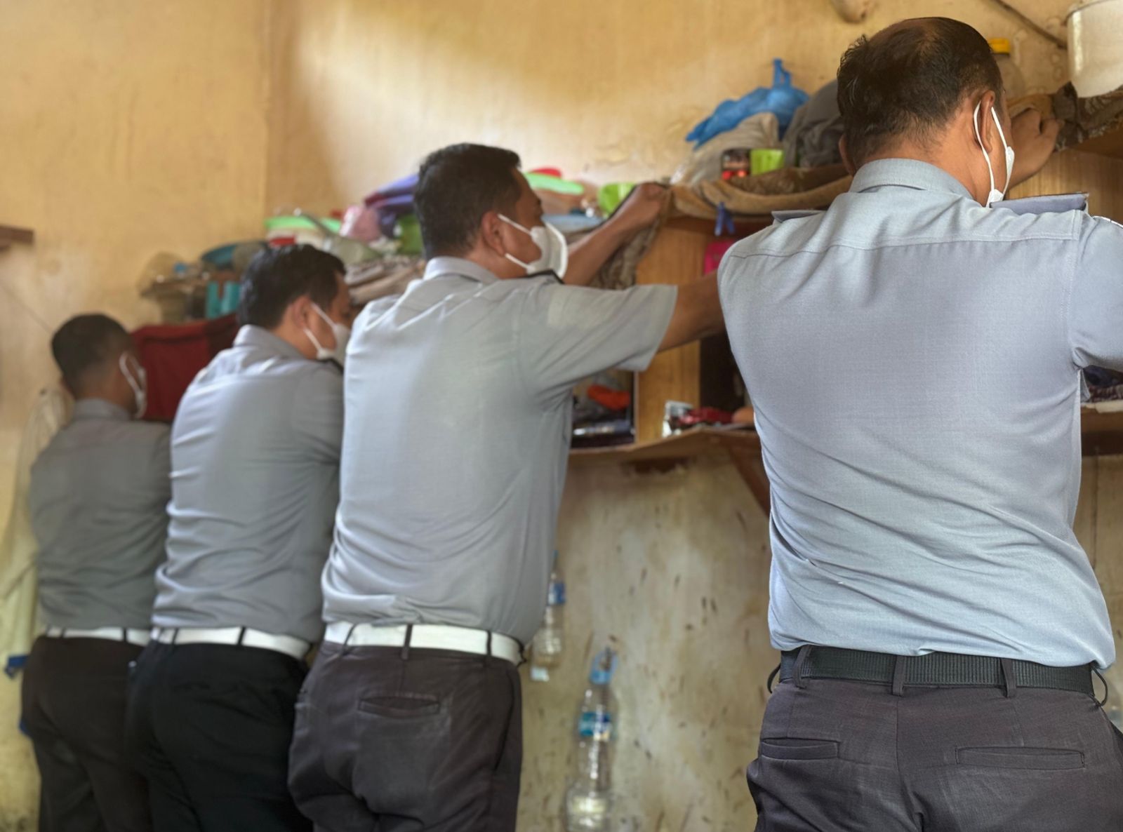 Kesatuan Pengamanan Lapas (Ka. KPLP), Medy Albar Suhartanto, bersama Kepala Seksi Administrasi Keamanan dan Ketertiban (Kamtib), Sabar Anju Padang, Kepala Subseksi Kamtib, Sahri Mulyanto, dan Kepala Subseksi Pelaporan dan Tata Tertib, Tri Andi Widiarto. Turut serta jajaran staf KPLP, staf Kamtib, dan anggota regu pengaman (rupam).
