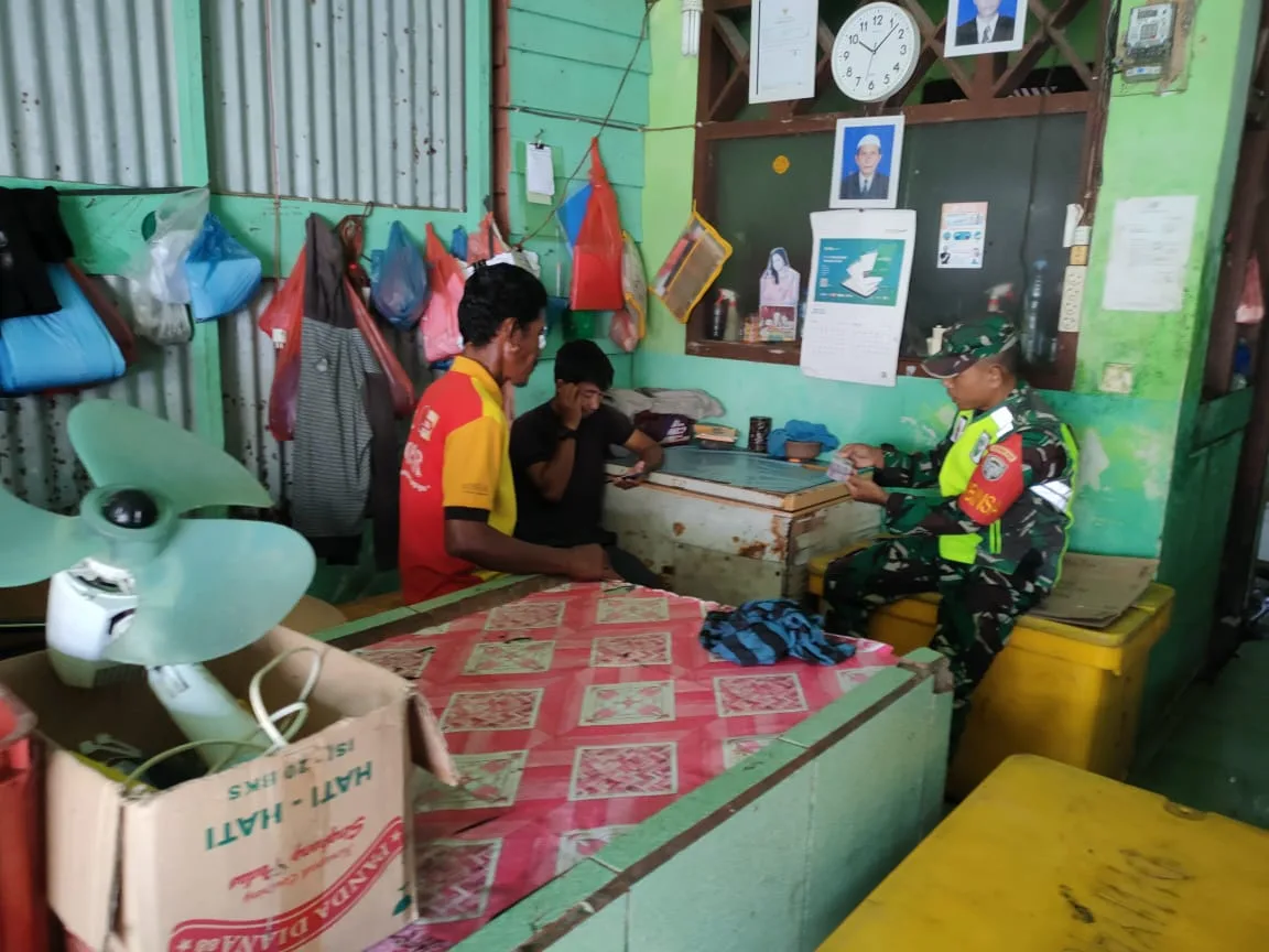 Simeulue – Serda Syafrizal Babinsa Koramil 01/Simtim, Kodim 0115/Simeulue, Korem 012/Teuku Umar melaksanakan kegiatan komsos bersama warga sebagai penjual ikan di Desa Suka Karya, Kecamatan Simeulue Timur, Kabupaten Simeulue. Minggu (23/11/2025).