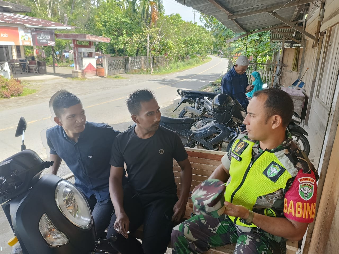 Dengan suasana santai dan penuh keakraban, Sertu Munawar berdialog langsung dengan warga setempat membahas berbagai isu sosial, keamanan lingkungan, serta pentingnya partisipasi aktif masyarakat dalam menjaga ketertiban desa.