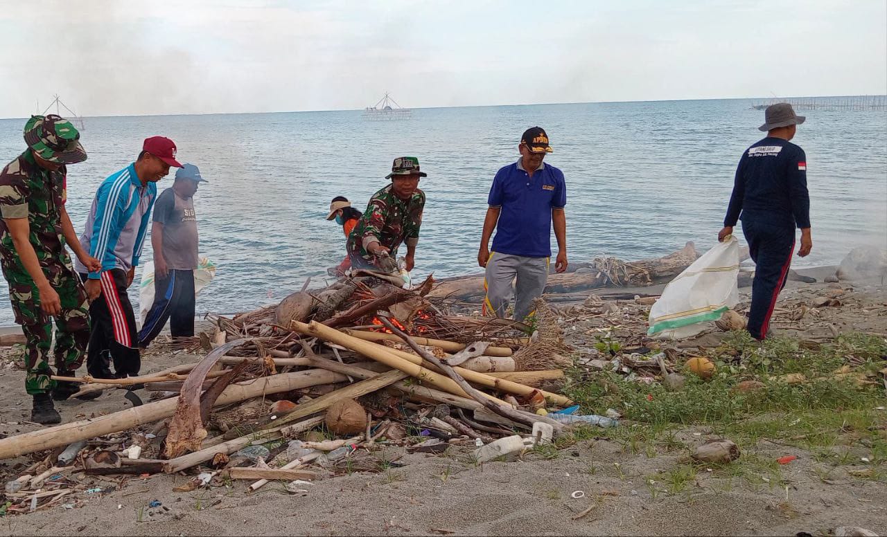 Pinrang_ Peduli kebersihan Lingkungan, Koramil-01/Suppa bersama pemuda dan warga mengadakan kegiatan kerja bakti pembersihan pesisir pantai di Dusun Menrallo Desa Wiringtasi Kecamatan Suppa Kabupaten Pinrang, Senin (12/05/2025).