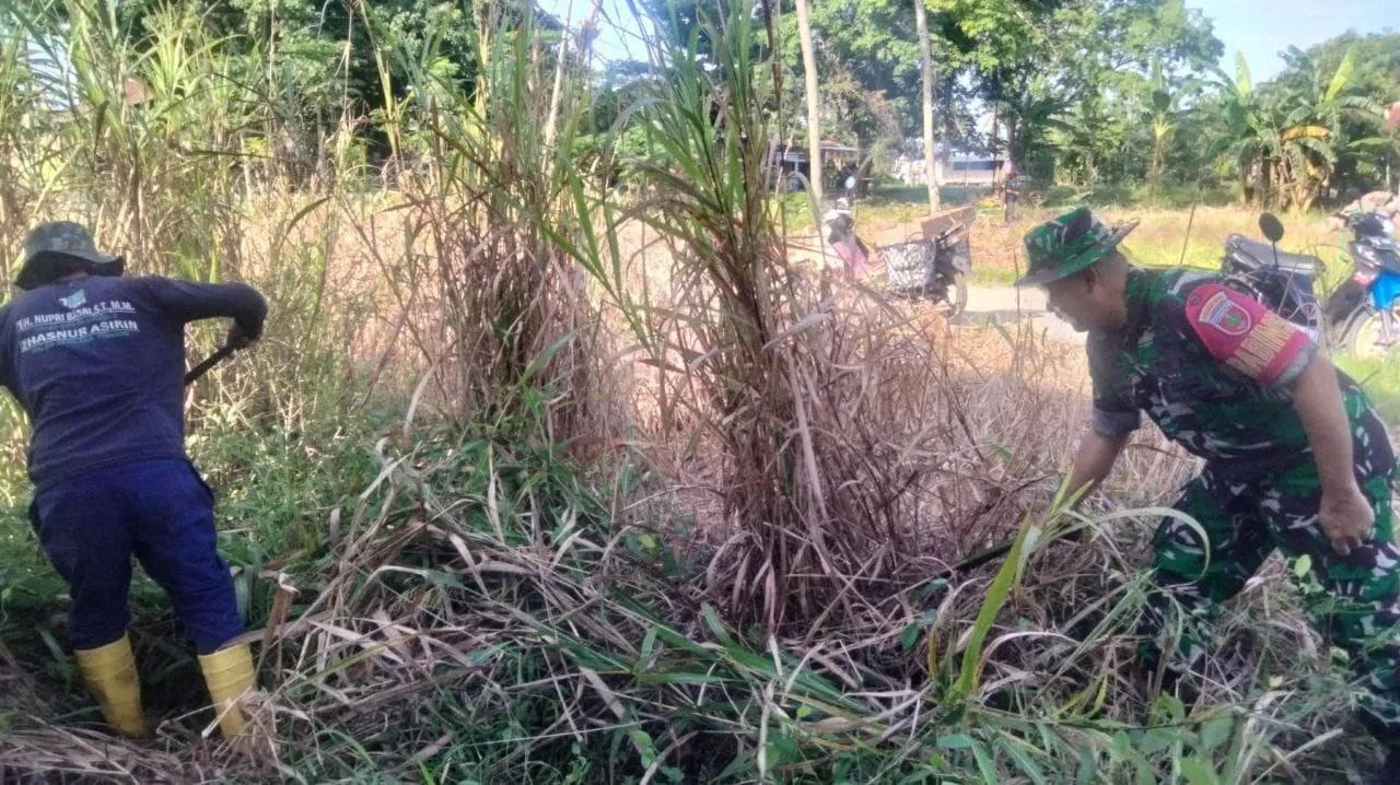 Pinrang_ Koramil 1404-06/Duampanua Kodim 1403/Pinrang bersama masyarakat melaksanakan kegiatan kerja bakti di Lingkungan Lampa, Kelurahan Lampa, Kecamatan Duampanua, Kabupaten Pinrang, Selasa (18/11/2025).