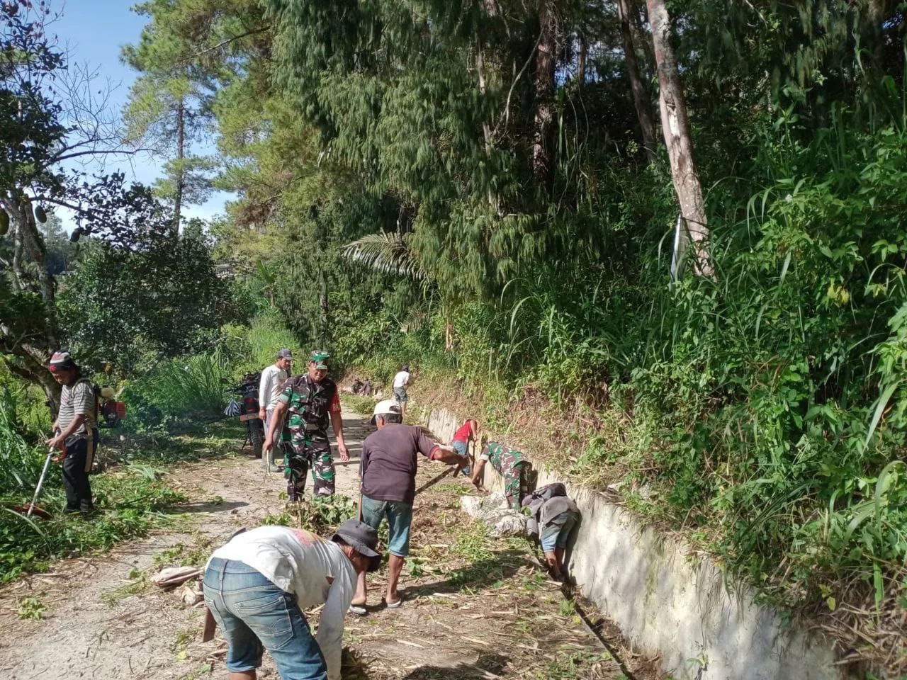 Kegiatan karya bakti tersebut melibatkan personel Koramil 1419-04/Alla bersama aparat desa dan masyarakat setempat. Pembersihan difokuskan pada saluran drainase dan bahu jalan yang mengalami pendangkalan dan pohon yang tumbuh liar yang menggangu pengguna jalan.
