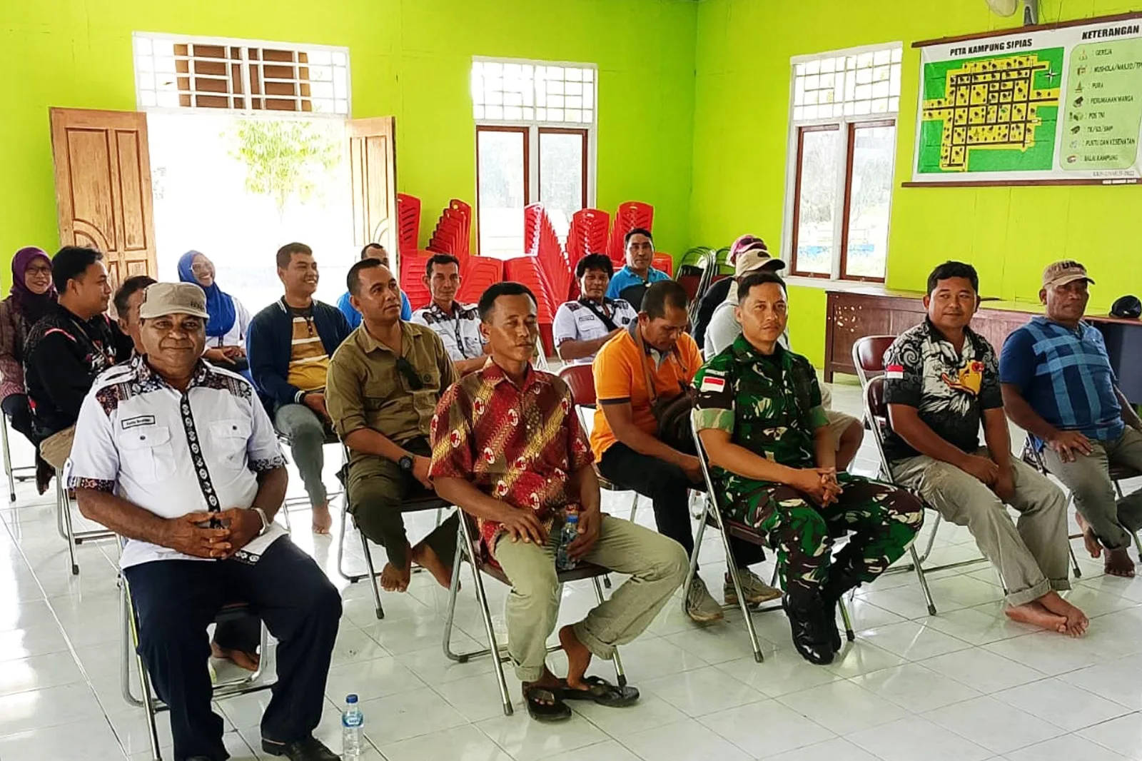 Merauke, 3 Desember 2025 – Suasana hangat dan penuh keakraban tampak mewarnai Balai Kampung Sipias, Distrik Elikobel, Kabupaten Merauke – Papua Selatan, saat Koramil 1707-07/Elikobel Kodim 1707/Merauke melaksanakan kegiatan Komunikasi Sosial Kreatif bersama Aparatur Pemerintahan Kampung serta Komponen Masyarakat setempat.