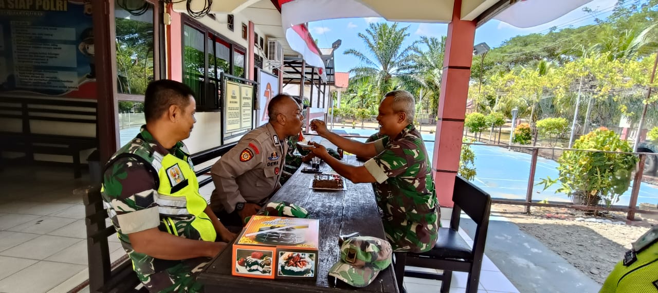 Seperti yang berlangsung di Mapolsek Kluet Tengah, Danramil 11/Kluet Tengah Lettu Inf Wadriadis memimpin kunjungan ke Mapolsek sembari membawbkue ulang tahun untuk jajaran Kepolisin Polres Aceh Selatan tersebut.