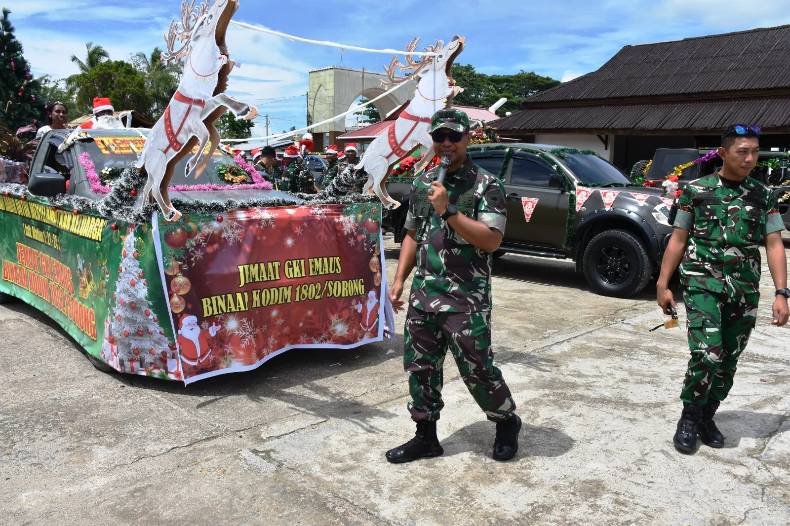 Sorong – Papua Barat Daya Korem 181/PVT Yang diwakili Kasiter Kasrem 181/PVT Kolonel Arm Ari Priyudono, S.Sos., M.Tr.Han., Memimpin Kegiatan “Karnaval Natal Tahun 2025 Bersama Kodam XVIII/Ksr Patriot Pembela Rakyat* dengan menggunakan Rute Start Alun-alun Kota Baru Aimas Finisnya di Kantor Walikota Sorong dengan ikuti ± 200 Peserta. Bertempat di di Alun-alun Aimas Jln Sorong Klamono km 19 Kelurahan Malagusa Distrik Aimas Kabupaten Sorong Provinsi Papua Barat Daya