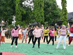 Setelah kegiatan apel dan yel-yel, seluruh prajurit melanjutkan kegiatan senam bersama Persit KCK Koorcab Rem 141.