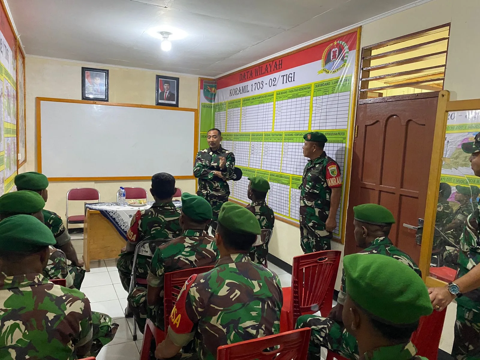 Tigi –Komandan Korem (Danrem) 173/PVB Brigjen TNI I Ketut Mertha Gunarda yang didampingi Dandim 1703/Deiyai Letkol Inf Ary Iswoyo, S,Hub, Int Timor berkunjung ke Koramil 1703-02/Tigi, Jumat (09/01/2025).