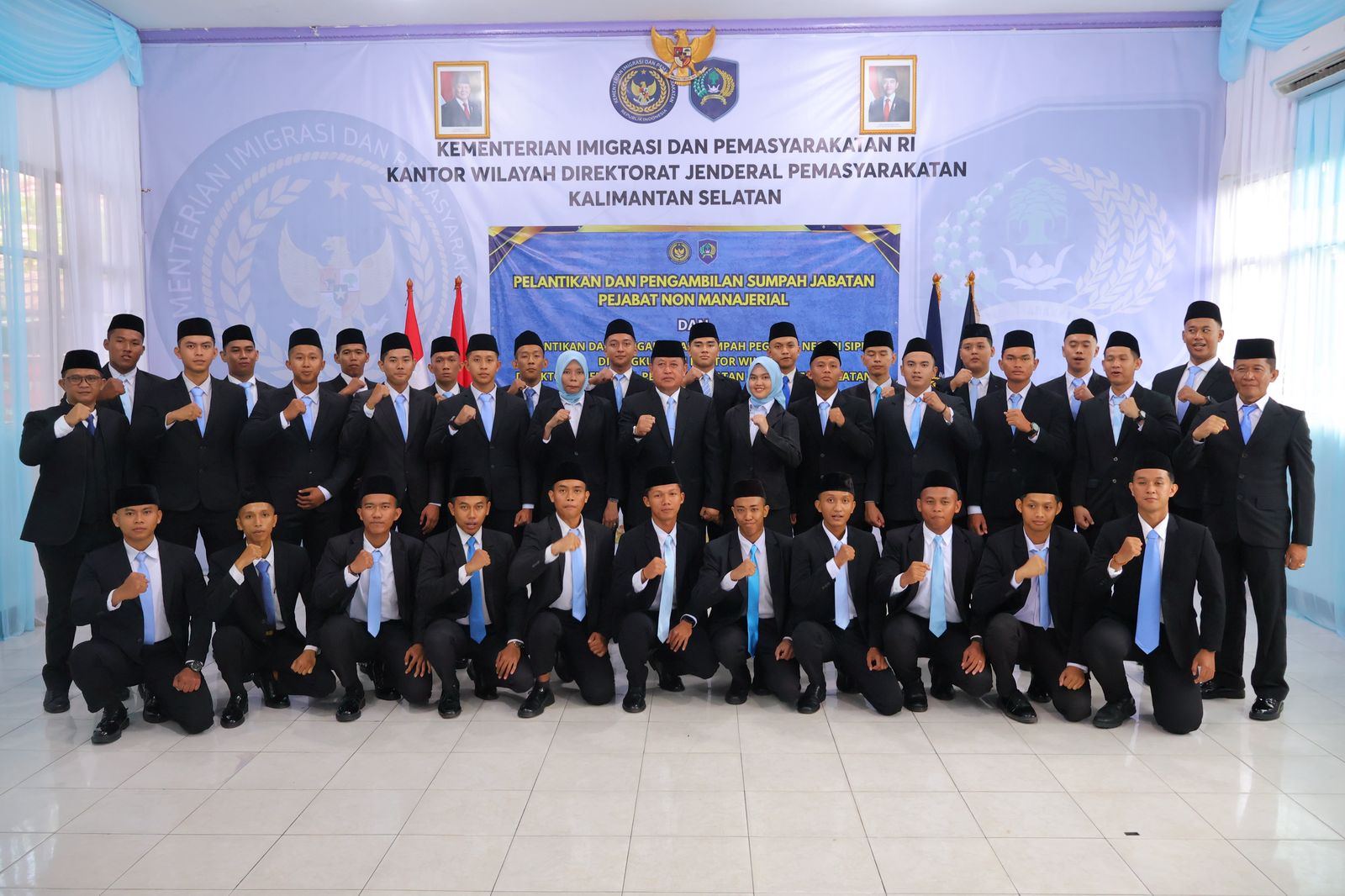 Kegiatan tersebut turut dihadiri para Pejabat Manajerial dan Pelaksana pada Kantor Wilayah, Kepala UPT Pemasyarakatan se-Kalimantan Selatan, dan undangan. Acara berlangsung khidmat, diakhiri ucapan selamat kepada seluruh pegawai yang dilantik.