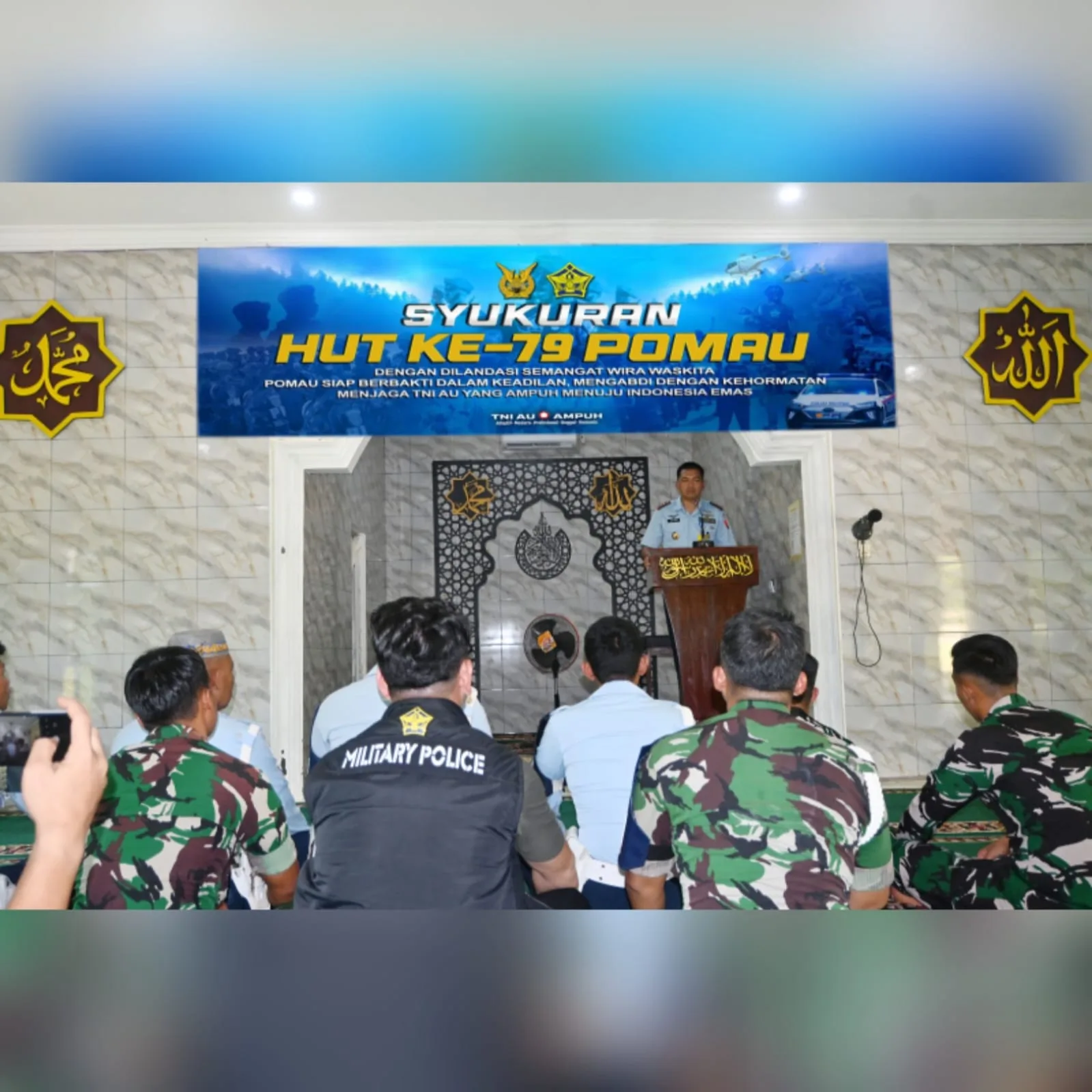 Pen Had. Bengkayang – Dalam rangka memperingati Hari Ulang Tahun ke-79 Polisi Militer Angkatan Udara (POM AU) Tahun 2025, Lanud Harry Hadisoemantri menggelar acara Syukuran dan Doa Bersama bertempat di Masjid Baitul Makmur Lanud Harry Hadisoemantri, Jumat (31/10/2025) usai pelaksanaan Sholat Jum’at.