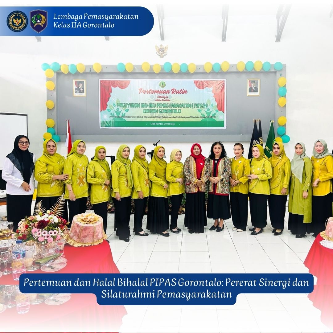 Sementara itu, Ketua PIPAS Gorontalo, Nyonya Anik Bambang Haryanto, berharap pertemuan rutin dan halal bihalal ini menjadi semangat baru untuk terus aktif berkontribusi. “Mari kita jaga semangat kebersamaan ini, terus menjadi penyemangat bagi para suami kita dalam menjalankan tugas yang penuh tantangan di bidang pemasyarakatan.”