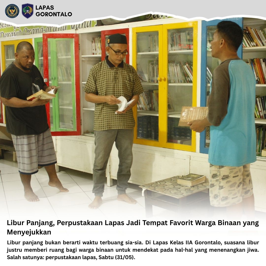 Gorontalo – INFO _ PAS – Libur panjang bukan berarti waktu terbuang sia-sia. Di Lapas Kelas IIA Gorontalo, suasana libur justru memberi ruang bagi warga binaan untuk mendekat pada hal-hal yang menenangkan jiwa. Salah satunya: perpustakaan lapas, Sabtu (31/05).