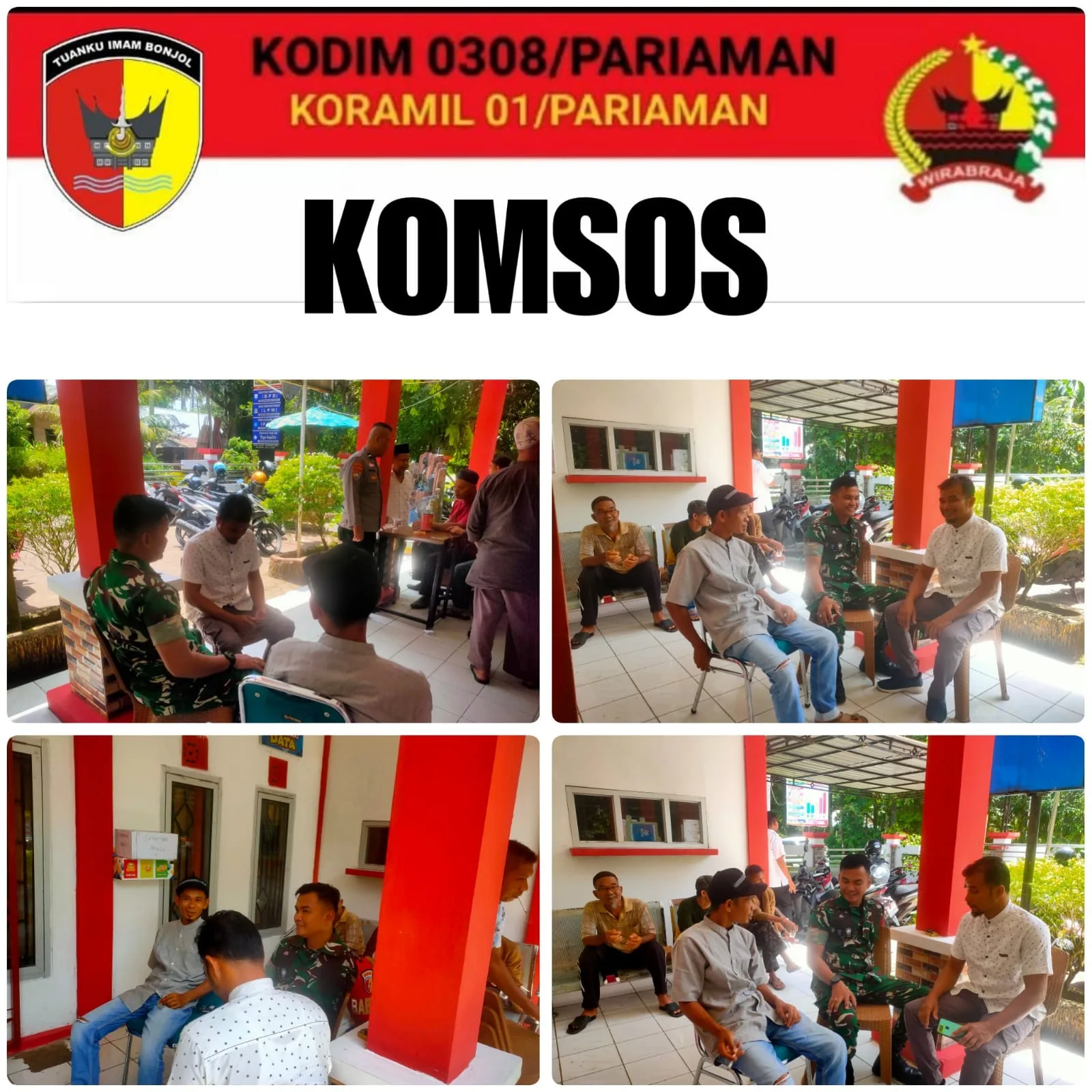 Kegiatan Komsos yang dilakukan Babinsa dalam rangka meningkatkan kemanunggalan TNI dengan rakyat serta upaya Babinsa untuk lebih mendekatkan diri dengan warga binaannya guna mempererat tali silaturahmi antara Babinsa dengan warga/masyarakat.