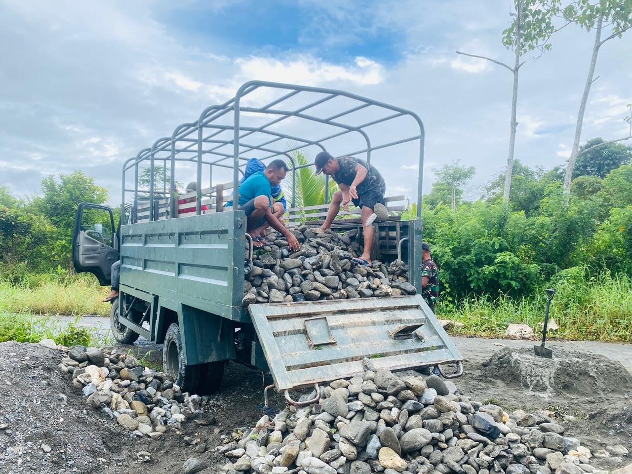 Material yang di butuhkan berupa pasir dan batu yang menjadi material yang perlu sangat di siapkan di karenakan jarang pengambilan yang cukup jauh sehingga perlu adanya perhatian khusus dari satgas TMMD. Ucapnya