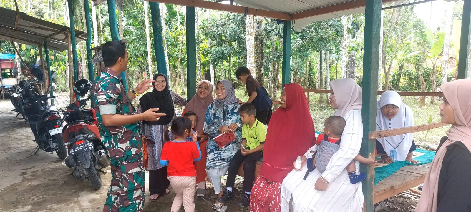 Pidie – Masih dalam suasana Hari Raya Idul Fitri, Babinsa Koramil 15/Tiro Kodim 0102/Pidie, Sertu K.M. Lase, melaksanakan kegiatan komunikasi sosial (komsos) dengan memberikan imbauan kepada masyarakat, khususnya para ibu-ibu, agar lebih peduli terhadap anak-anaknya saat bermain di Desa Meunasah Panah, Kecamatan Tiro, Kabupaten Pidie, Rabu (25/03/2026).